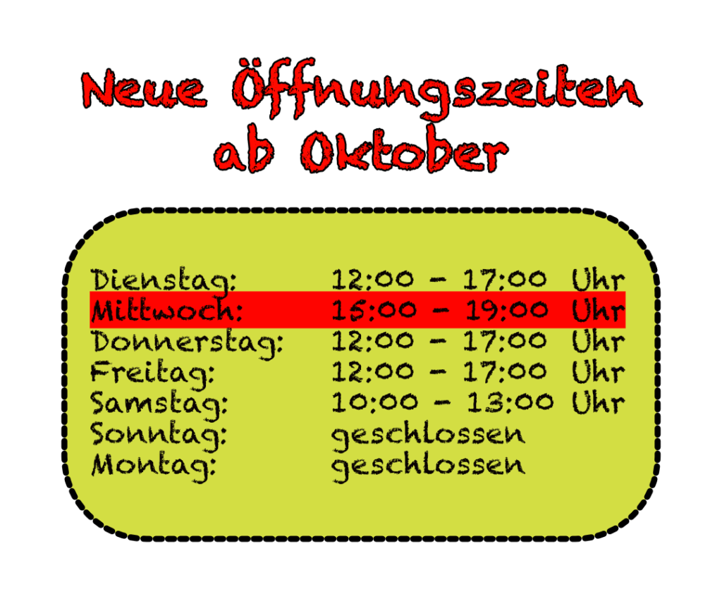 Achtung! Neue Öffnungszeiten ab Oktober