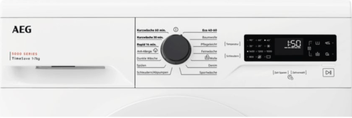 Aeg Waschmaschine mit 7KG Fassungsvermögen, 1400 Schleudertouren, Heißdampfprogramm, Anti Allergieprogramm, ProSense Mengenautomatik, Invertermotor mit 10 Jahren Garantie, AEG Schontrommel, 3 Kurzprogramme, Startzeitvorwahl, Restzeitanzeige, sehr leise.