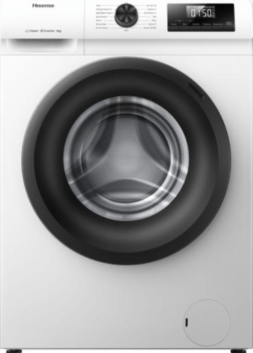 HiSense Waschmaschine mit 8KG Fassungsvermögen, 1400 Schleudertouren, Nachlegefunktion, Heißdampf, Kindersicherung, Trommelreinigung, Startzeitvorwahl uvm. Mit Invertermotor sehr energiesparend: EEK A