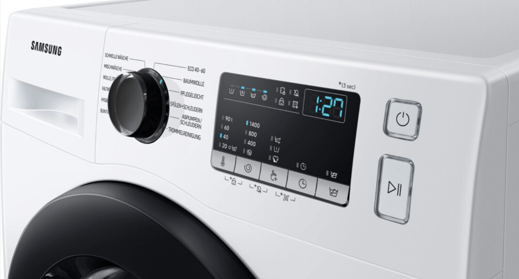 Samsung Waschmaschine mit 9KG Fassungsvermögen, 1400 U/min, Invertermotor mit 10 Jahren Garantie, AquaStop, Mengenautomatik, selbstreinigender Schublade, Ecobubble Technologie, sensorische Mengenautomatik, Beladungserkennung, Kindersicherung uvm.